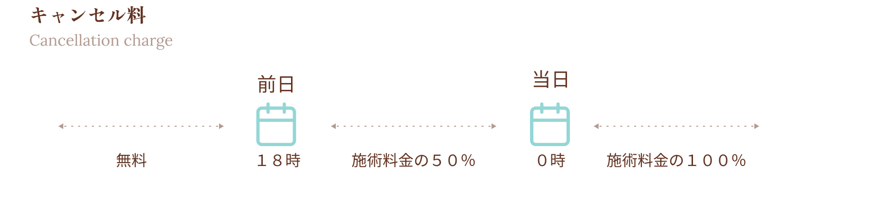 それ以降の「当日キャンセル」「無断キャンセル」「ご予約の変更」はキャンセル料が発生いたします。